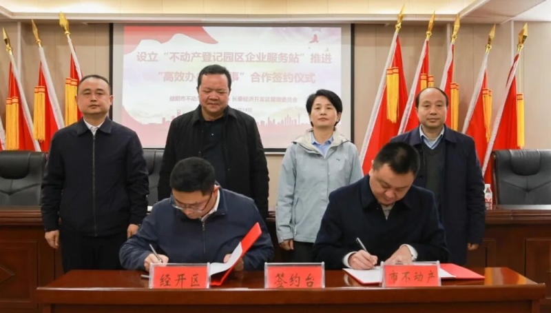 近日,益阳市不动产登记中心与长春经开区共同签署《设立“不动产登记园区企业服务站”,推进“高效办成一件事”合作协议》,并举行“不动产登记园区企业服务站”授牌仪式,标志着我区政务服务再升级、营商环境再优化。益阳市自然资源和规划局党组书记、局长刘卫,资阳区委副书记、区长黄瑛出席。