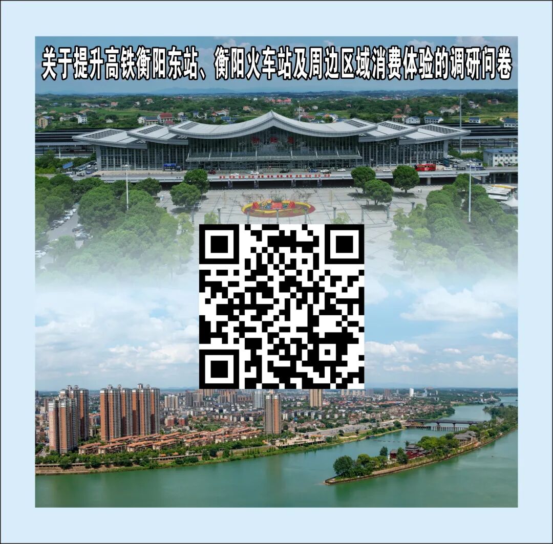 尊敬的市民朋友: 您好!为进一步挖掘高铁衡阳东站、衡阳火车站及周边区域经济发展潜力,我们诚挚邀请您参与本次问卷调查,您的宝贵意见将为优化“两站”商业业态、提升消费体验提供重要参考。 参与方式:扫描下方二维码,即可提交您的建议,截止时间为2025年10月24日,感谢您的支持与配合!