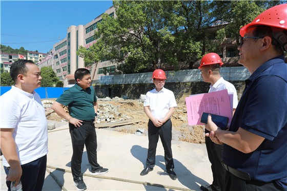 丁热平在县第二中学初中部教学楼建设项目工地了解工程进展情况