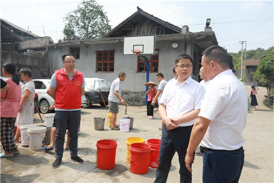 丁热平在长田湾乡老屋台村供应生活用水现场调研指导抗旱救灾工作