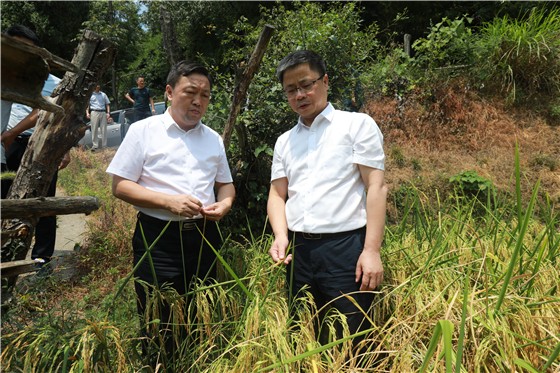 在仙人湾瑶族乡农林村、后塘瑶族乡骨干山塘等地,丁热平走进田间地头,详细察看连日干旱对水稻、旱作物长势、产业种植地的影响,听取相关部门关于抗旱保收、蓄水灌溉、生产自救等工作汇报,并安排部署抗旱减灾相关工作。他强调,当前全县高温少雨天气仍在持续,又正值禾苗抽穗、灌浆的关键时期,抗旱任务非常艰巨,各级各部门要抢抓农作物生长周期,及时抢收作物,确保粮食能保尽保、应收尽收,切实守牢粮食安全底线,力争把干旱损失和影响降到最低;要充分发挥水利设施作用,统筹做好农业灌溉水源和抽水设备的调配,千方百计增加抗旱水源,确保受旱农田得到有效灌溉;要加强水利工程建设,强化抗旱水库、山塘、水池等水源调度和管理,不断提高水利工程抗旱能力。