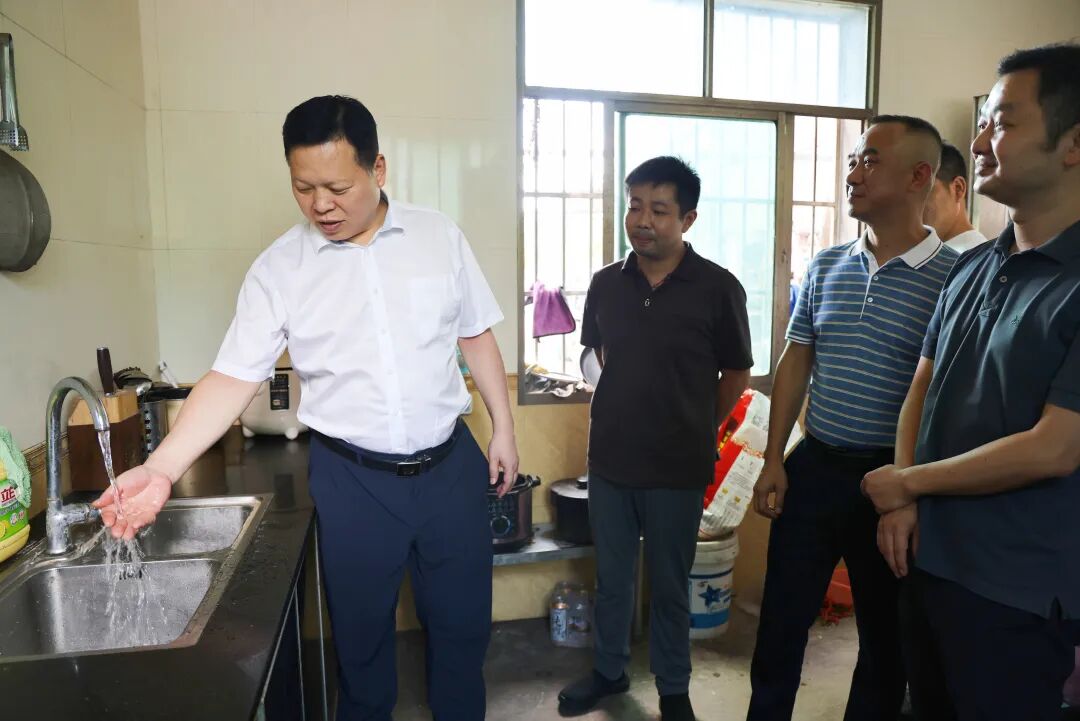 随后,魏中发一行来到东阳渡村绊塘组,现场了解村民家中水龙头出水的水量、水压和水质状况,听取群众诉求和意见建议。