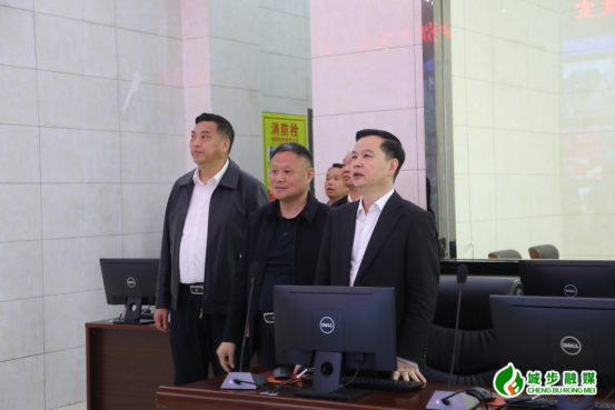 图为县委书记何德波在指挥调度区了解区域运行情况