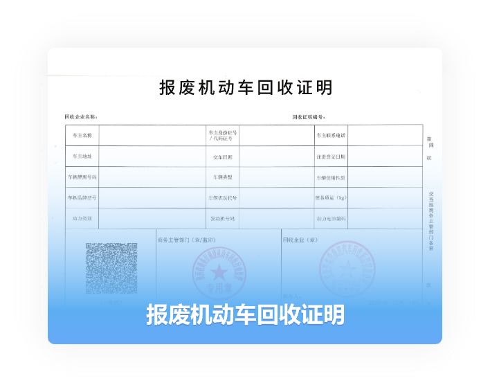 申请人报废个人名下的旧车,并在规定时间内取得《报废机动车回收证明》。