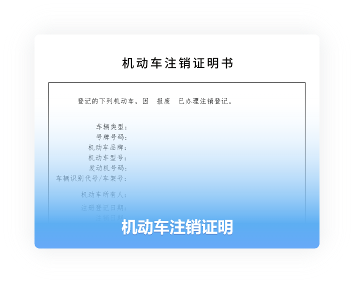 申请人注销个人名下的旧车,并在规定时间内取得《机动车注销证明》。